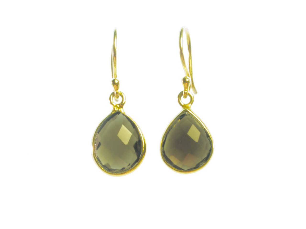 Earring small facet cut green onyx tear drop in a setting – E1199