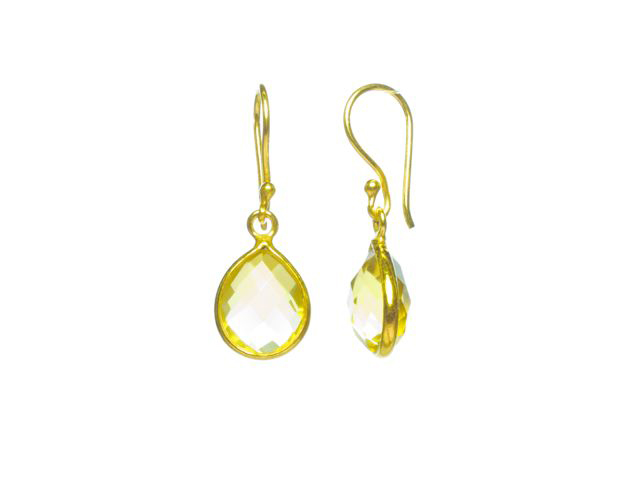 Earring with facet cut pear green onyx drop in a fine setting,